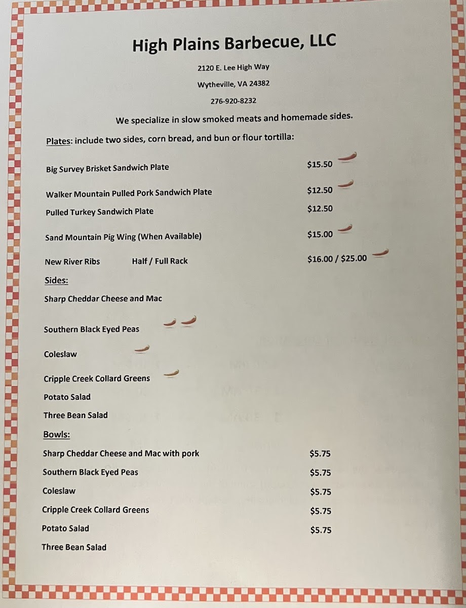 Welcome to High Plains Barbecue, an enticing culinary delight nestled in Wytheville, VA, conveniently positioned off the highway. With a stunning view and ample outdoor seating, it’s the perfect pit stop for travelers and locals alike.